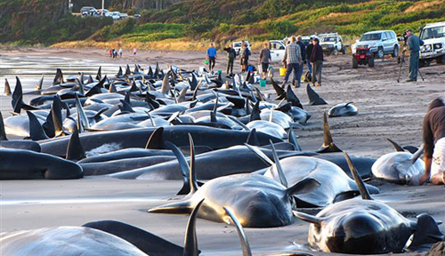 Whales are beaching themselves for reasons we can guess: Noise pollution by shipping, military sonar and seismic oil exploration are supected causes. Beaching could be a trial to escape insupportable sound pollution.