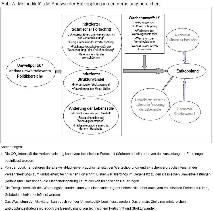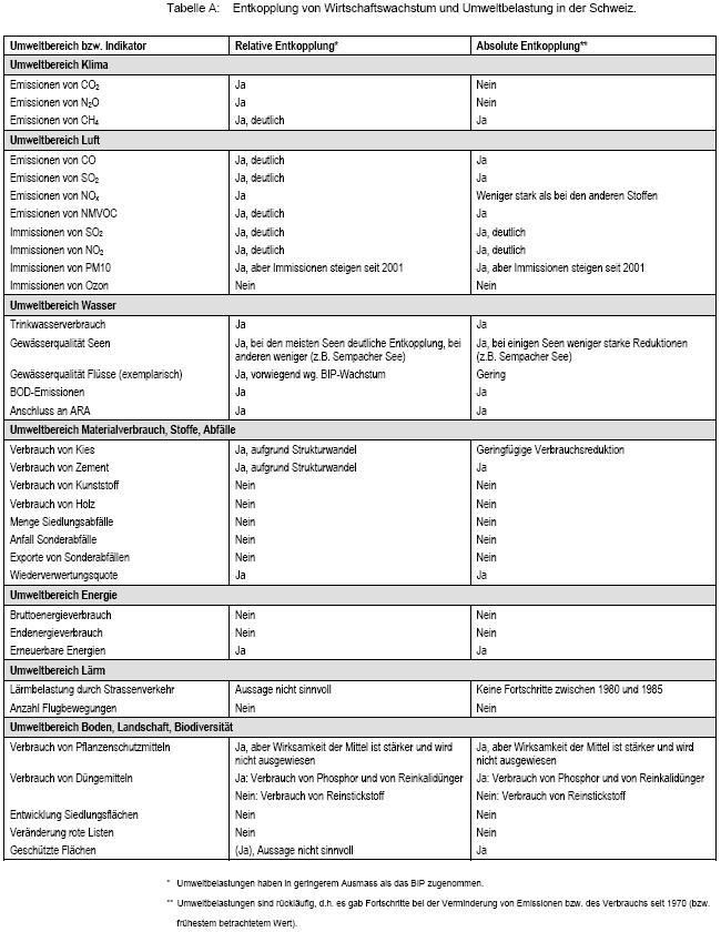 In "Umwelt" 4/2005 stellt das Schweizer Bundesamt für Umwelt (BUWAL) die Ergebnisse einer 180-seitigen Studie vor, die nur als 1,7 MB pdf-Dokument im Internet vorliegt. Hier folgen einige Ausschnitte.BUWAL - UMWELT-MATERIALIEN NR. 198 - Ökonomie Wachstum und Umweltbelastung: Findet eine Entkoppelung statt?