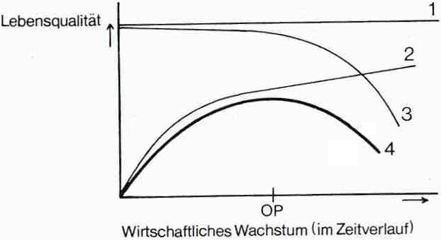 Die Verschlechterung der Lebensbedingungen durch Minderung von N, die mit der Produktion zunimmt, hat Hans Christoph Binswanger in einer graphischen Darstellung zu erfassen versucht: