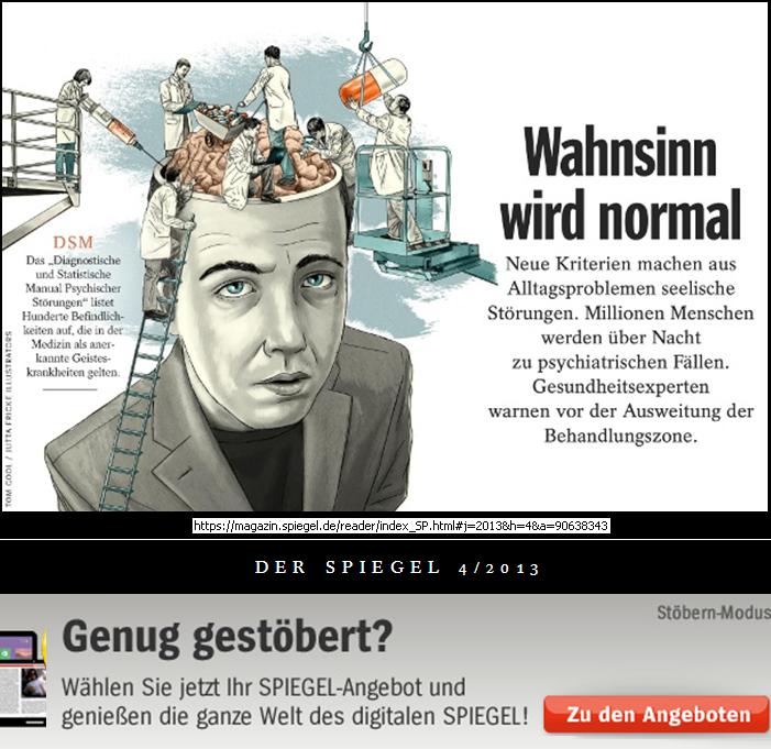 Nr. 4/2013, Die Psycho-Falle - Therapeuten streiten über die Grenze zwischen Gesundheit und seelischer Erkrankung Profitgelenkter Wahn |