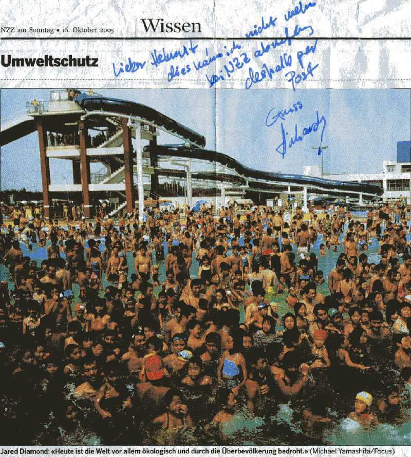 Nachtrag 2 August 2007: Jared Diamond hat 1987 einen ässerst interessanten Artikel über den Unterschied zwischen steinzeitlichen Jägern/Sammlern und neuzeitlichen Argrar-/Industriegesellschaften geschrieben. Siehe ecostory 76-2007: Growthquotes