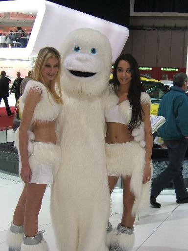 Bei den Eröffnungsansprachen gab es einige düstere Töne wegen der Wirtschaftskrise. Herr David Hiler, Präsident des Genfer Regierungsrates, sprach sogar von drohenden Rohstoffmängeln. Herr Bundespräsident Hans-Rudolf Merz wünscht uns "Momente des automobilistischen Entdeckens, Staunens, Träumens und Geniessens." Wir meinen auch, dass man nach den katastrophalen Aussichten wegen des Klimawandels (vorherige ecostory) sich besser ein wenig über die lustigen Seiten des Lebens freuen sollte. Der Schneemann Yeti ist übrigens genau so ein Märchen wie Null-Abgasemissionen. Foto: Markus Weirather |
